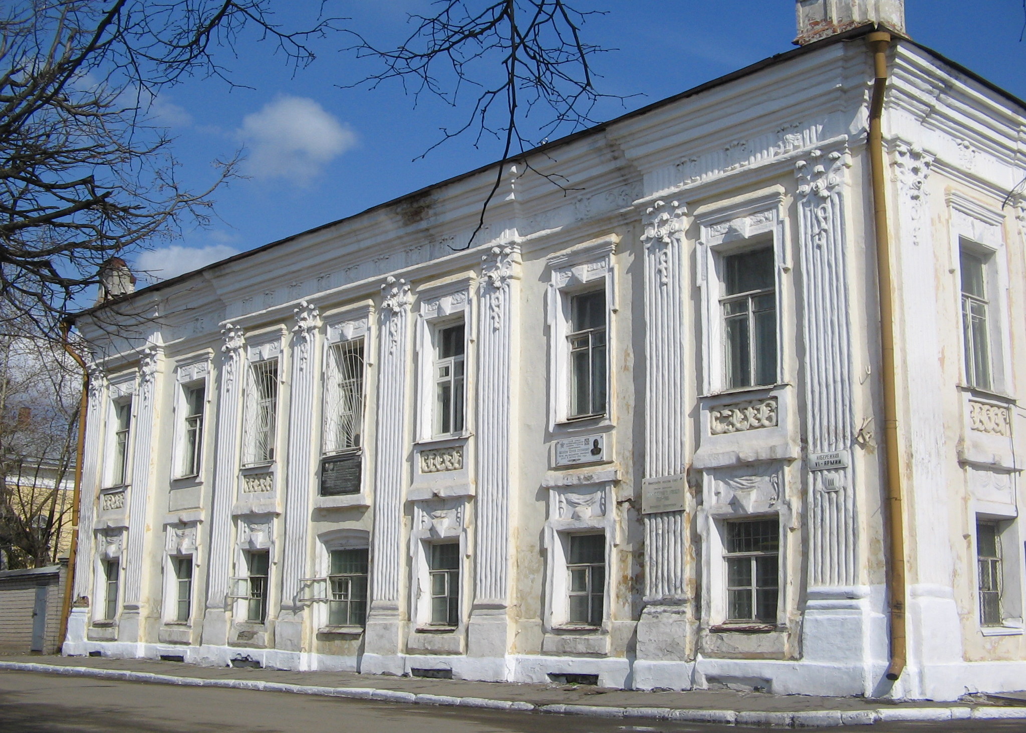 О прежней великолепной отделке интерьеров дает представление хорошо сохранившийся парадный зал второго этажа. Стены его украшены фигурными рамками-филенками; в центре каждой из стен (за исключением прорезанной окнами) — неглубокие арочные ниши, в глубине которых стоят пирамидальные обелиски, увенчанные вазами. Парадный декор зала дополняет пышная лепнина плафона.