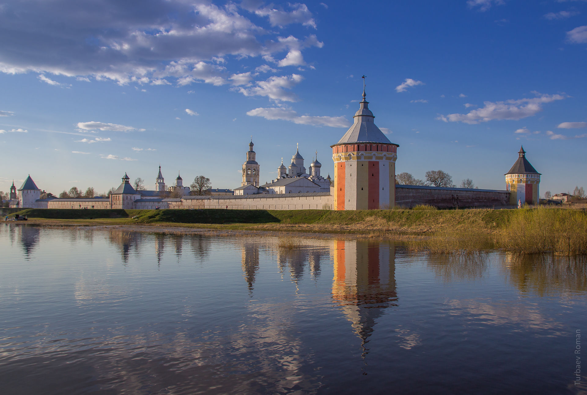 В двух километрах северо-восточнее Вологды, в излучине, или в «луке», реки расположен Спасо-Прилуцкий монастырь — один из крупнейших монастырей Севера, великолепный архитектурный ансамбль древней Руси. Опоясанный могучими крепостными стенами с высокими мощными башнями, этот ансамбль особенно живописен со стороны пологого берега Вологды и расстилающихся заливных лугов. Яркая зелень низменной поймы еще более оттеняет торжественно-величавую суровость его архитектуры.