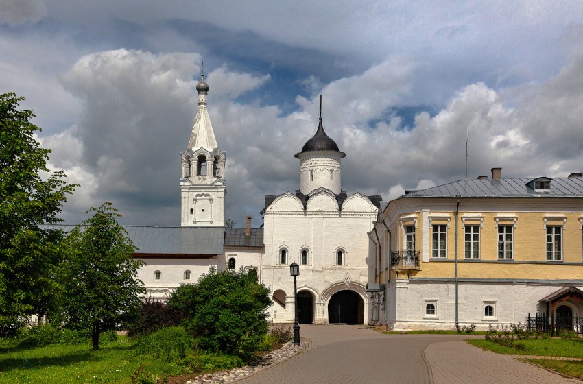 В северной стене Спасо-Прилуцкого монастыря, что в Вологде, находится прежний главный въезд в монастырь — так называемые Святые ворота с небольшой надвратной церковью Вознесения. Они являются древнейшей частью монастырской ограды, возникшей еще в конце XVI века, когда все остальные стены с башнями были деревянными. Уже в 1590 году был освящен сооруженный над ними храм во имя Федора Стратилата (переименован в 1815 г.), святого воина, покровителя русских в ратном деле.