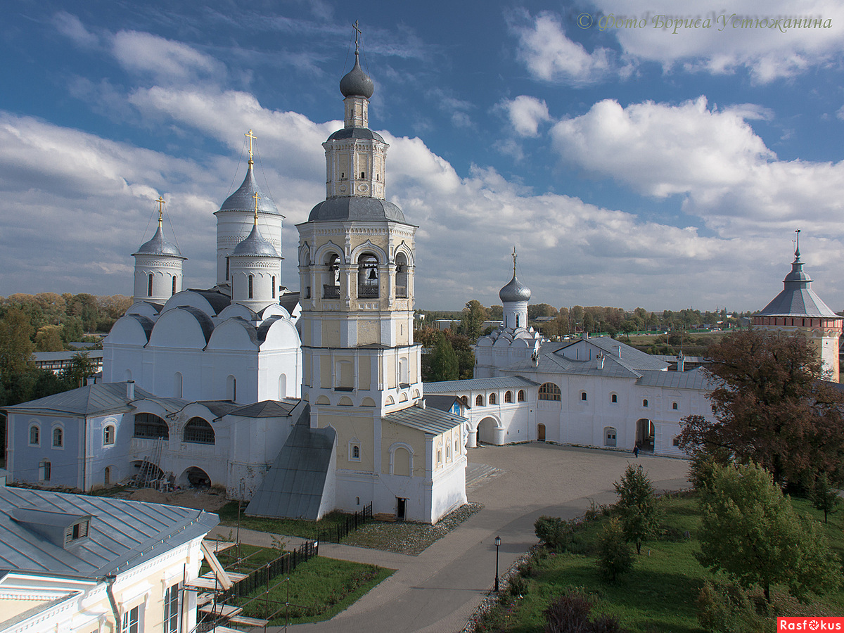 Через современный вход близ северной башни войдем на территорию монастыря. Прямо перед нами высится главное здание ансамбля — монументальный Спасский собор вологодского Спасо-Прилуцкого монастыря. Воздвигнут он в 1537-1542 годах взамен сгоревшего деревянного. Время сооружения здания было зафиксировано торжественной храмозданной надписью на каменной плите, вставленной в его стену возле входа, на паперти. Москва, заинтересованная в скорейшем окончании строительства собора, в 1541 году специальным указом от имени Ивана Грозного освобождает на пять лет монастырские вотчинные села и деревни от всяких податей, обеспечив тем самым необходимые средства на его достройку.