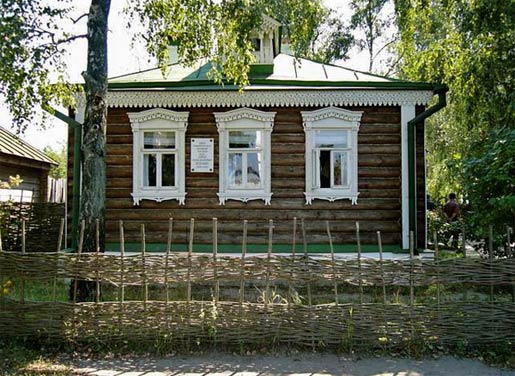 Знакомый всем по его стихам «низший дом с голубыми ставнями» стоит за невысокой изгородью, рядом с ним растут тополь и березка. В крестьянской тесноватой горнице, кажется, все так же, как и в бытность поэта, тикают старинные часы в деревянном футляре. Висит полушубок матери, который Сергей назвал шушуном в стихотворном послании к ней. Деревянные кровати покрыты лоскутными одеялами, комод и самовар стоят на прежних местах. А на стене — повешенный еще отцом в рамке под стеклом похвальный лист, выданный Сергею Есенину по окончании четырехклассного земского училища в Константинове.
